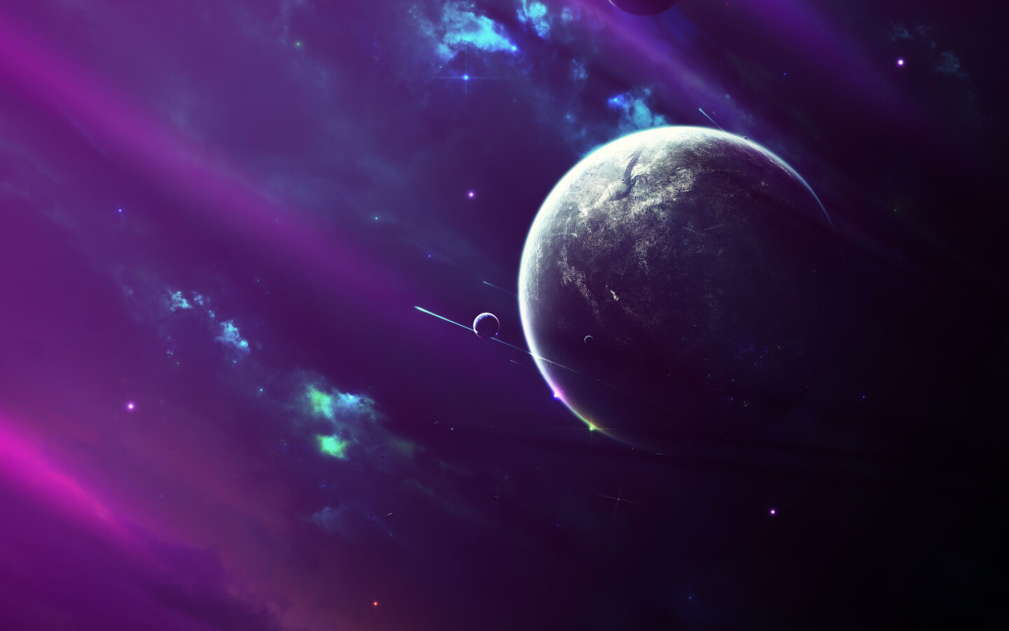 Wonderful Purple Galaxy and Single Planet - 1440x900