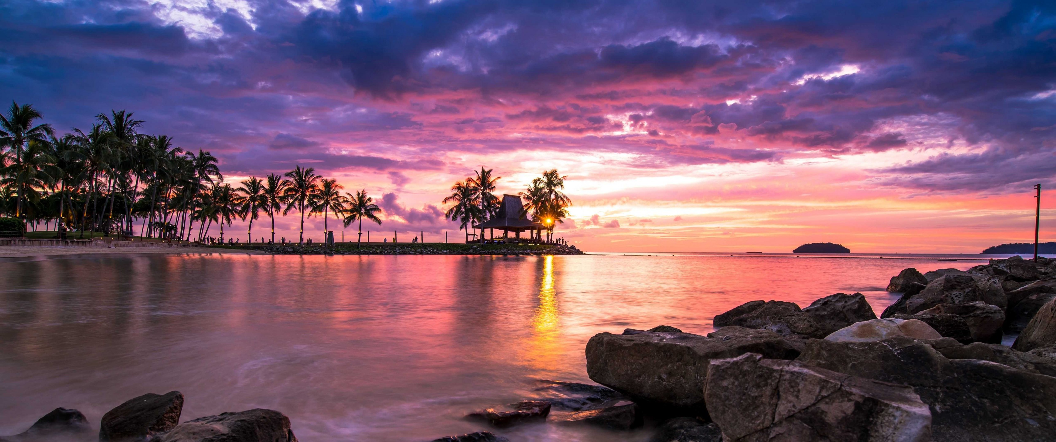 Wonderful purple sunset and rocks - 3440x1440 Ultra WQHD
