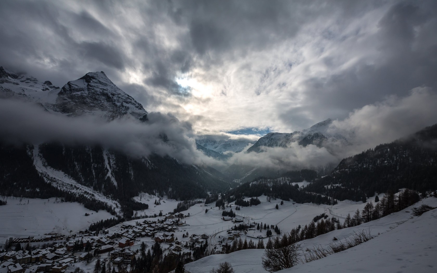 Wonderful Snowed Mountain Valley - 1680x1050