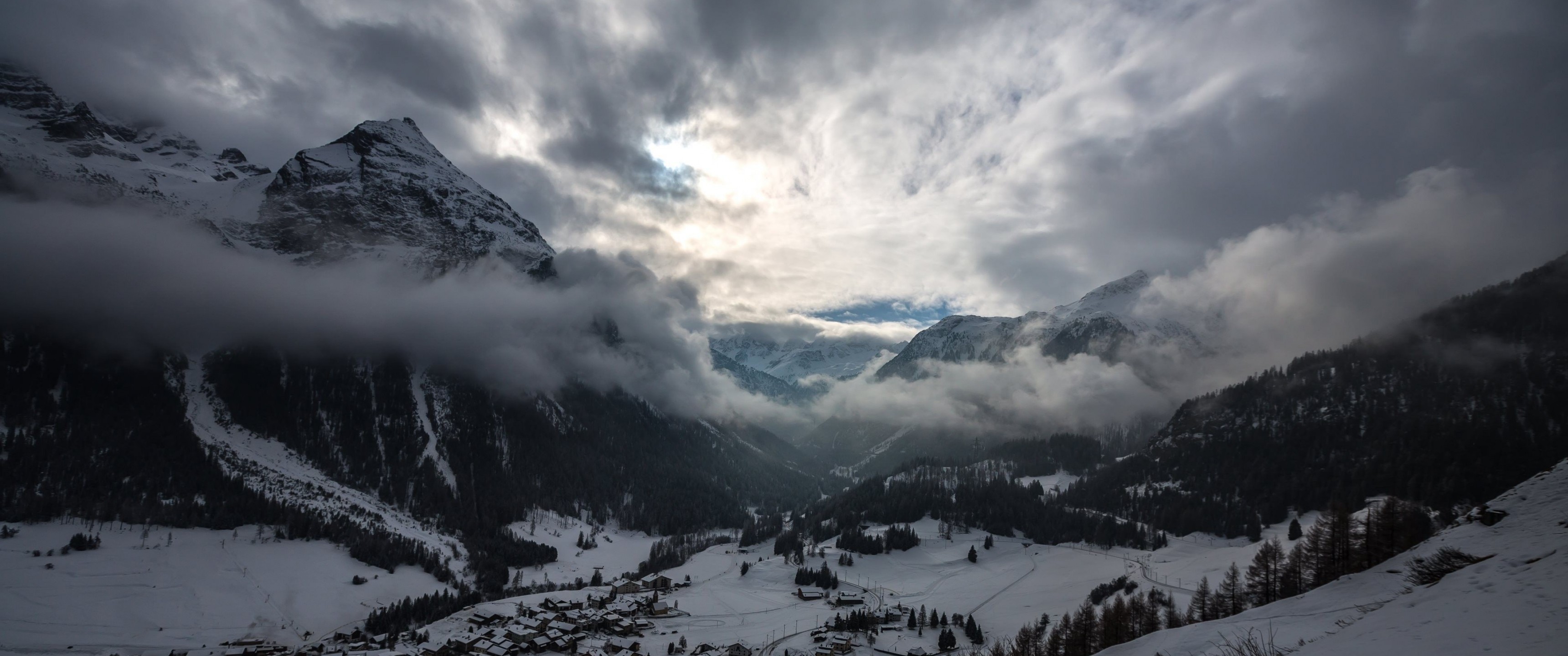 Wonderful Snowed Mountain Valley - 3440x1440 Ultra WQHD