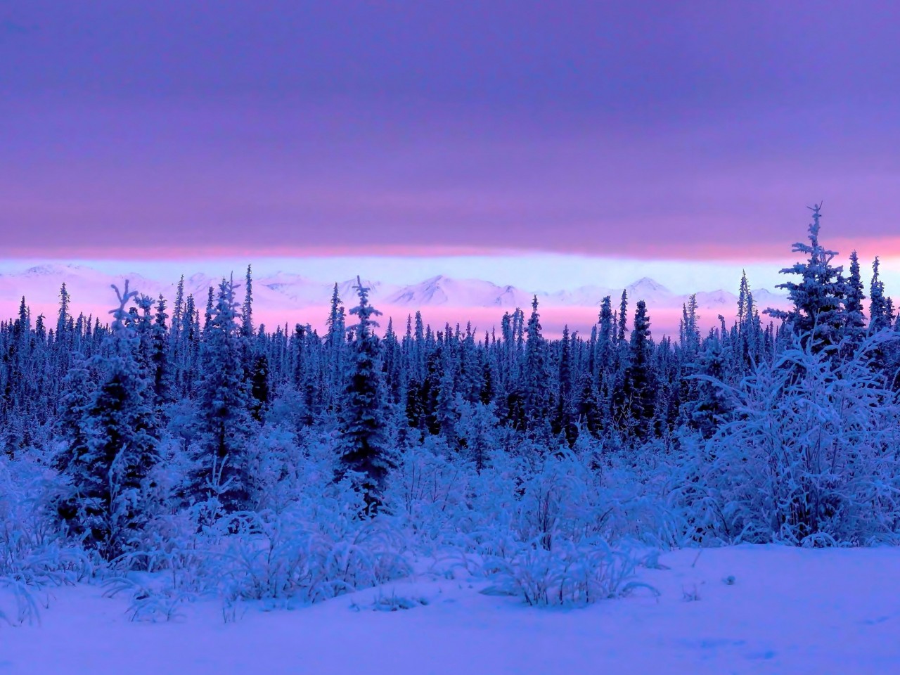 Wonderful Snowed Pine Forest and Pink Sunset - 1280x960