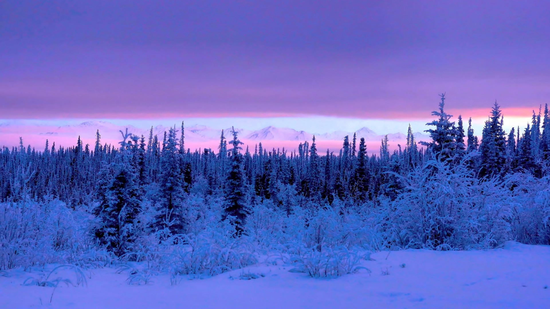 Wonderful Snowed Pine Forest and Pink Sunset - 1920x1080 (1080p)
