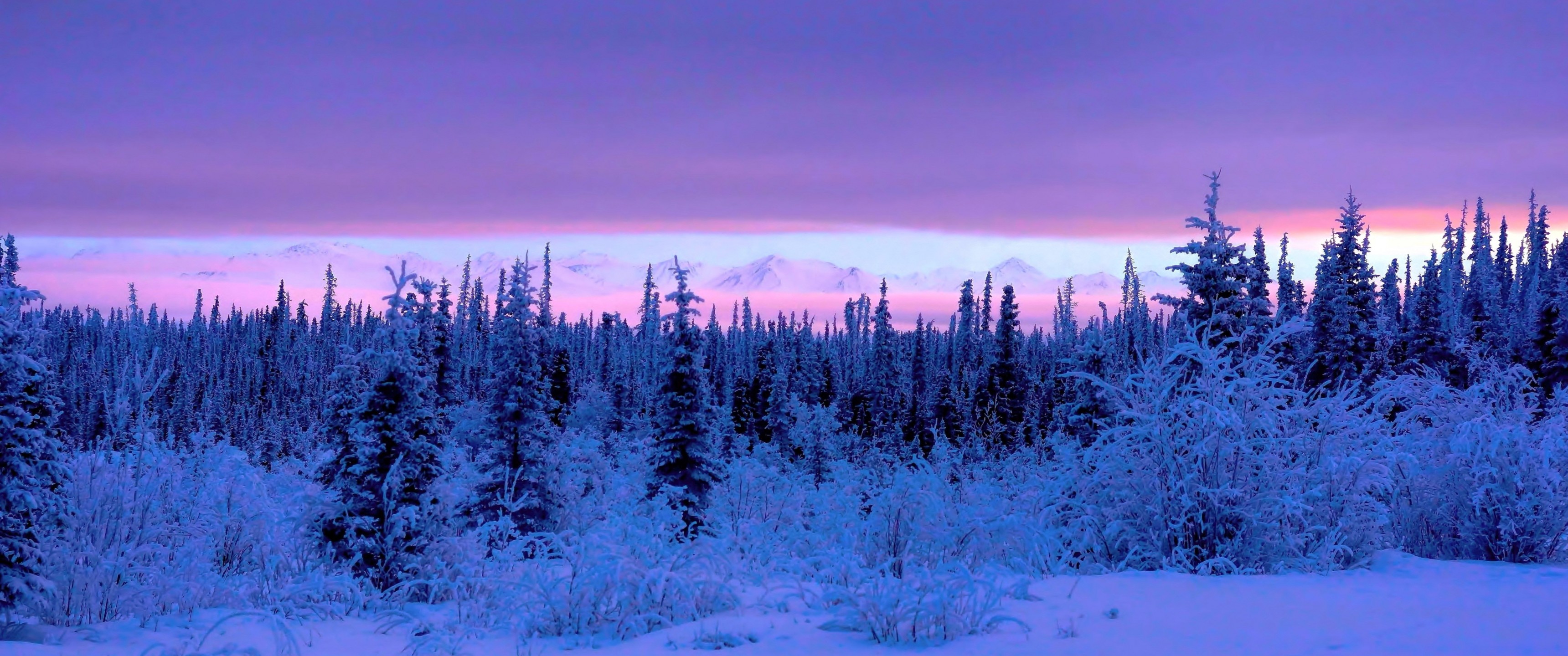 Wonderful Snowed Pine Forest and Pink Sunset - 3440x1440 Ultra WQHD
