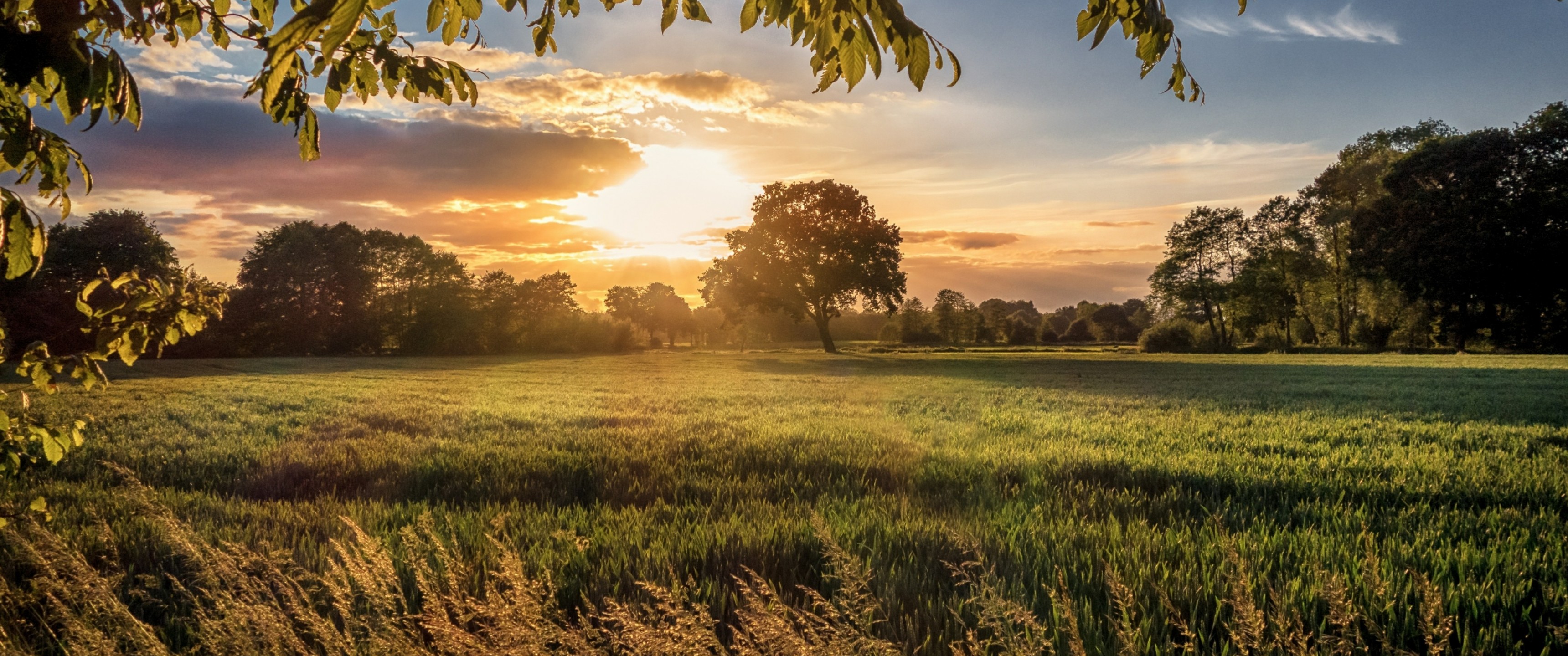 Wonderful Sunset and Green Field - 3440x1440 Ultra WQHD