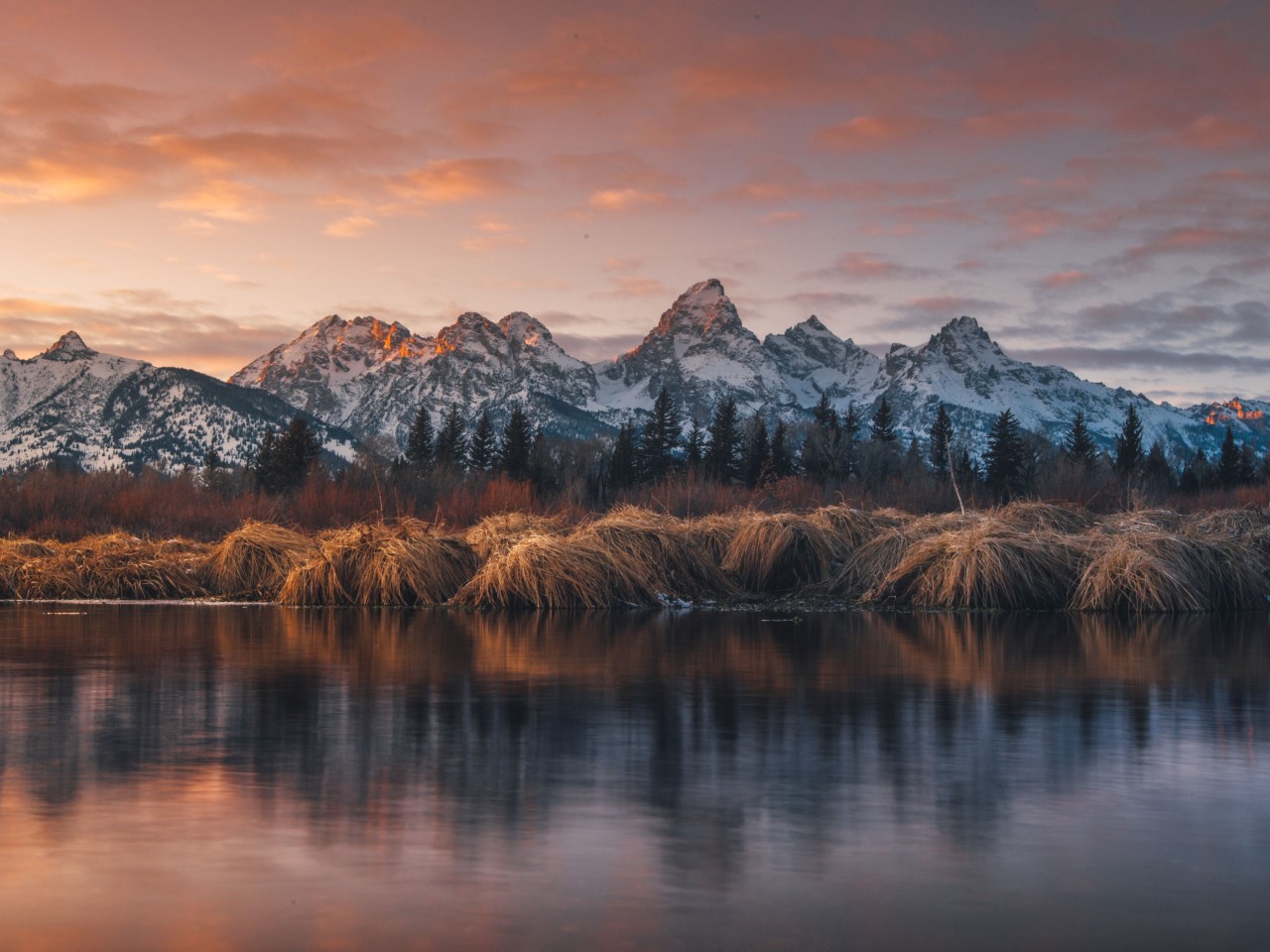 Wonderful View on Snowed Mountains and Autumn Forest - 1280x960