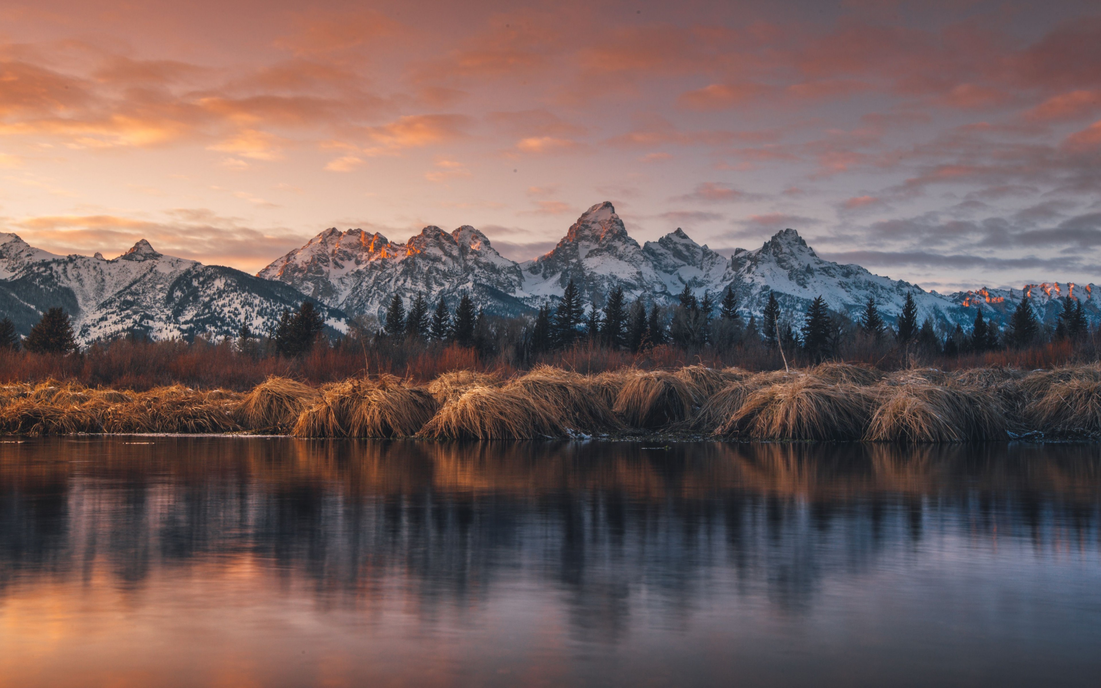 Wonderful View on Snowed Mountains and Autumn Forest - 3840x2400