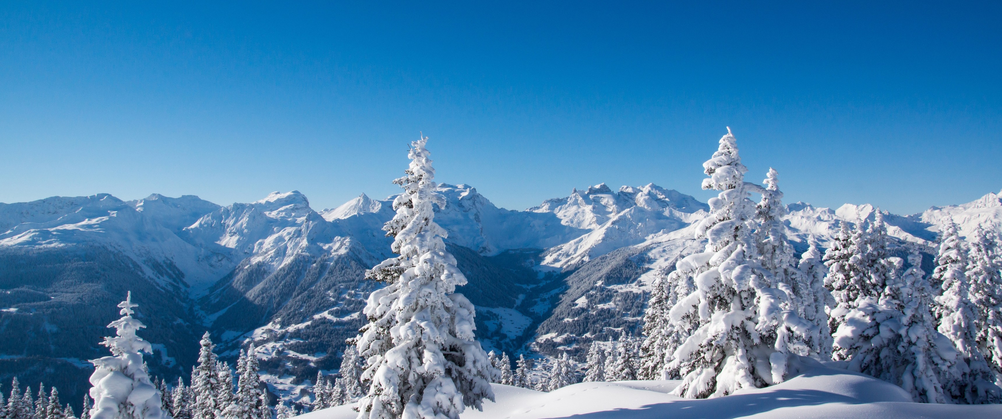 Wonderful Winter Forest and Mountains - 3440x1440 Ultra WQHD
