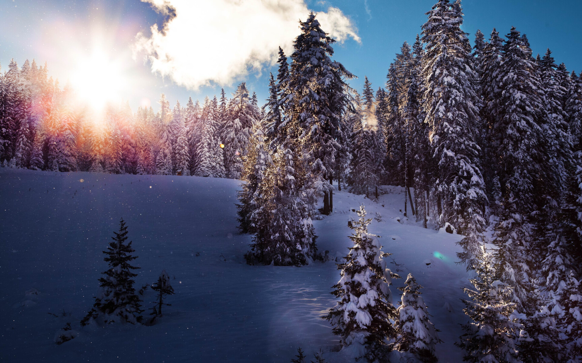 Wonderful Winter Forest and Sunrise - 1920x1200