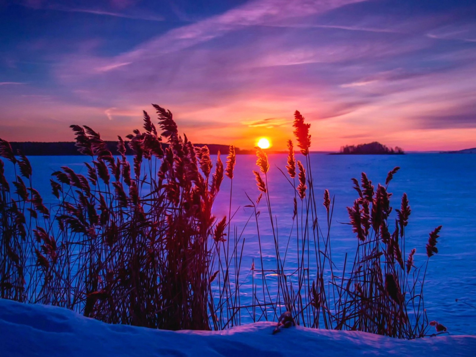 Wonderful Winter Sunset and Frozen Lake - 1600x1200