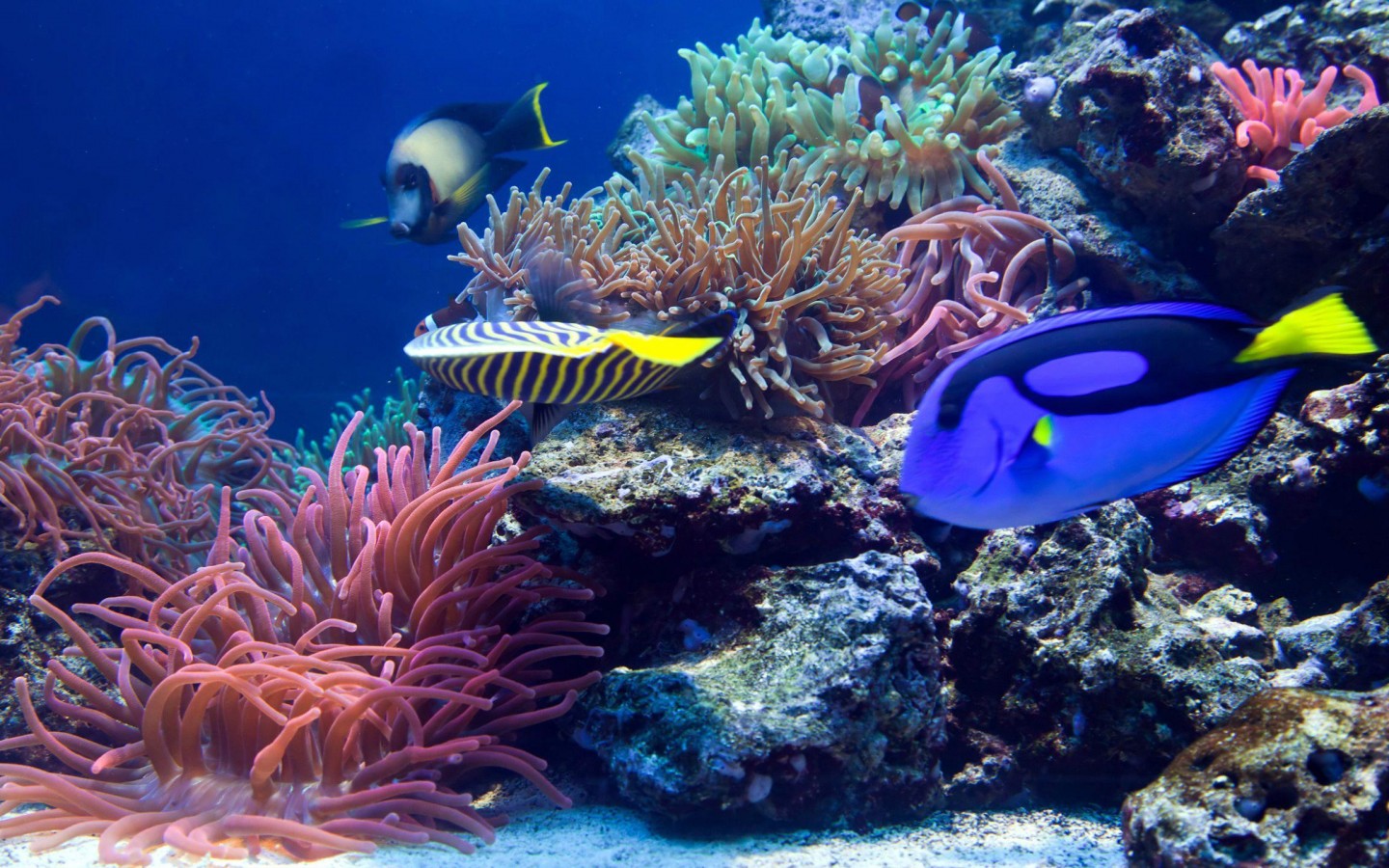 Yellow Blue Fishes near Coral Reefs - 1440x900