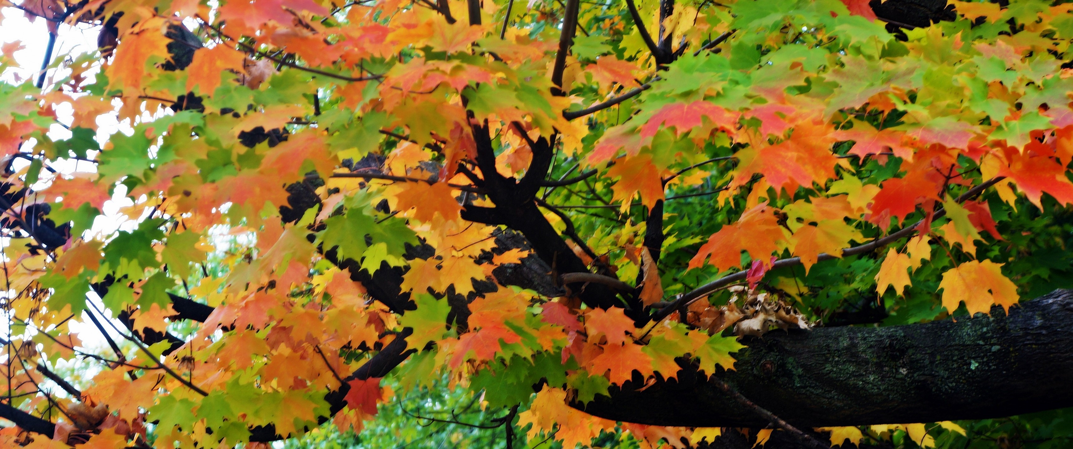 Yellow Green and Red Leaves on Tree - 3440x1440 Ultra WQHD