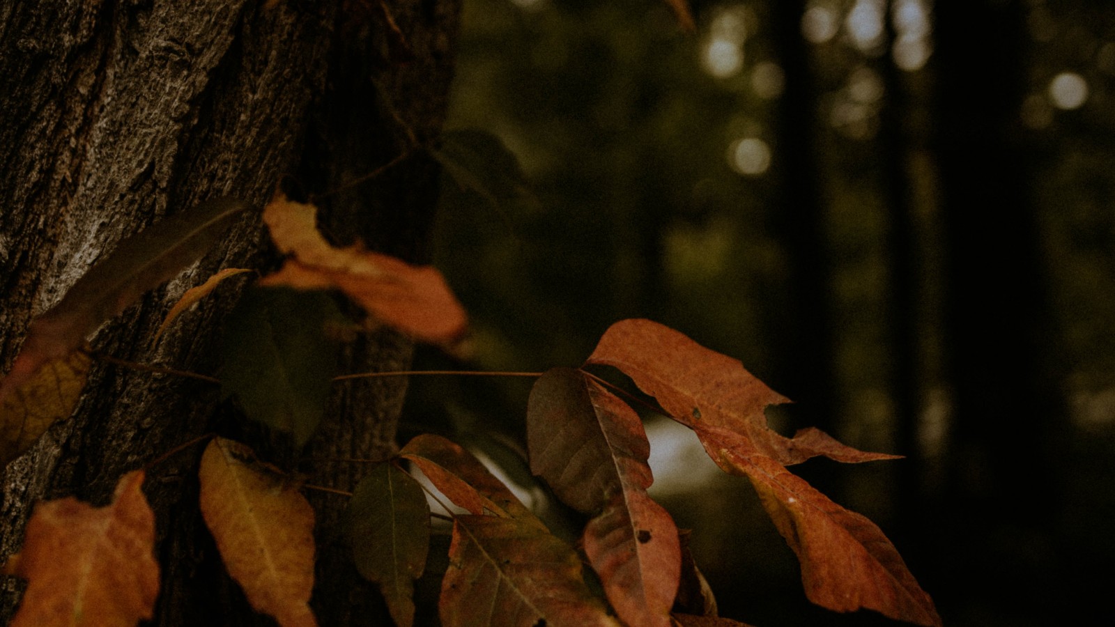 Yellow Leaves in Dark Forest - 1600x900